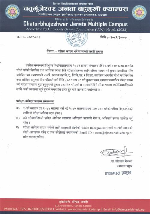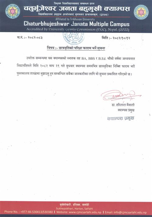 गते बसेको क्याम्पस संचालक समितिको बैठक निर्णय बमोजिम यस क्याम्पसको नियमित
