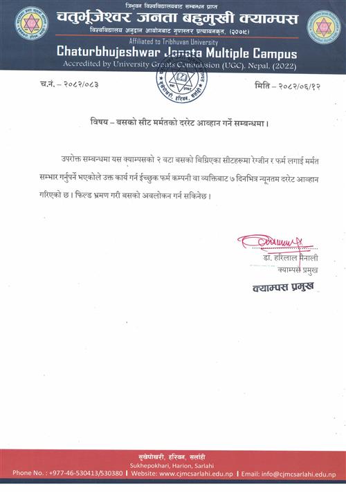 सम्भार गर्नुपर्ने भएकोले उक्त कार्य गर्न र्इच्छुक फर्म कम्पनी वा व्यक्तिबाट ७
